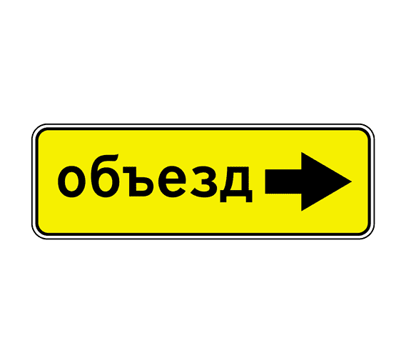 Применяют для указания направления движения по маршруту объезда участка дороги, временно закрытого для движения.